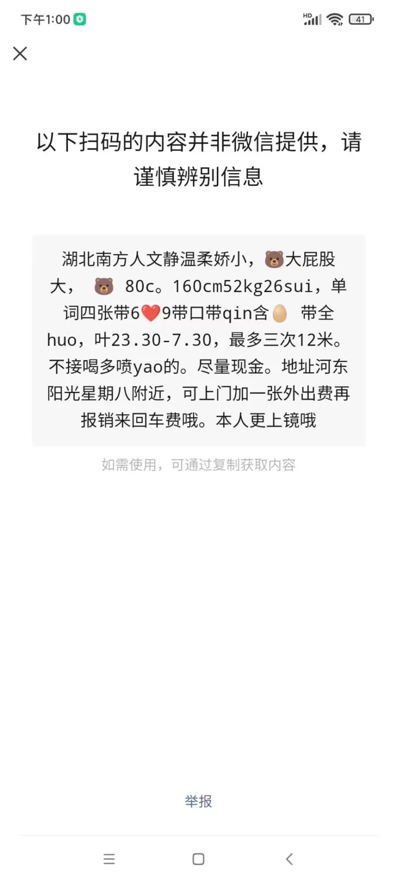 信息分类:楼凤兼职 地区:天津市-天津市 信息来源:朋友推荐 年龄:26 颜值身材:70 服务项目:口,大 价格:400 环境设备:70 详细地址:本段信息已隐藏,请先登陆。点击登陆 , 或者 点击注册 联系方式(QQ号):本段信息已隐藏,请先登陆。点击登陆 , 或者 点击注册 详细介绍: 人照七八分像吧,没啥活,进屋直接脱,口了会直接大,口活挺不错,不机车也不催,卸货不错,比路边内些四五十岁的老梆子强多了。美中不足的是没地方冲个澡 楼凤兼职