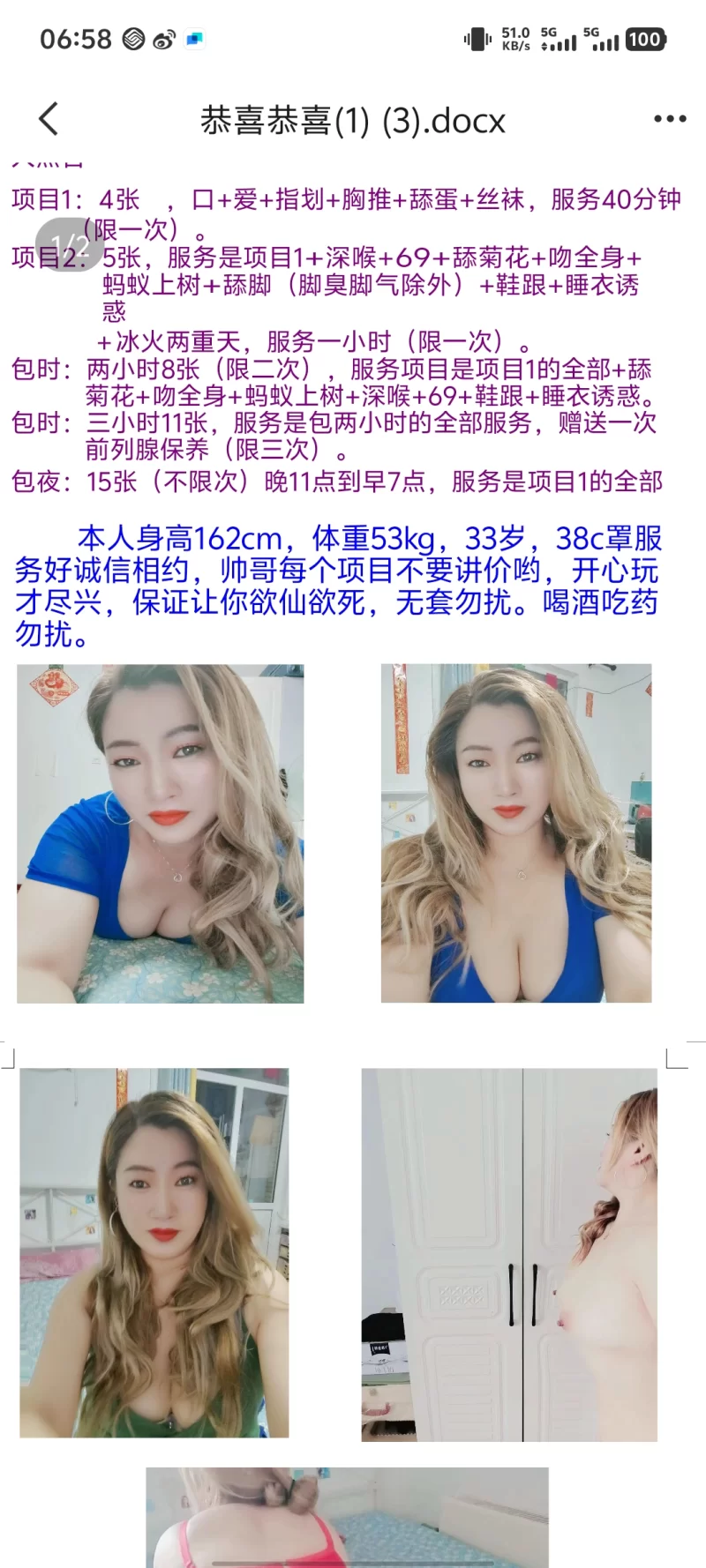 【验证细节】:去年11月是疯狂地一月,基本隔个几天就找个妹子,这个妹子还是去年跟狼友要的,妹子照片看着很单纯,本人要比照片风尘一些,不过也能到85分,之前去体验过一次,感觉总体还不错,最近憋得有一阵子了,想起来她了,于是联系上,也怕安全问题,她说她们那边每天都定时消毒换洗的,在京十四天以上才可以去,听她这么说就放心多了,服务是真的赞,虽然没去东莞体验过真正的莞式服务,不过妹子的项目很多,做的很细致,舒服。