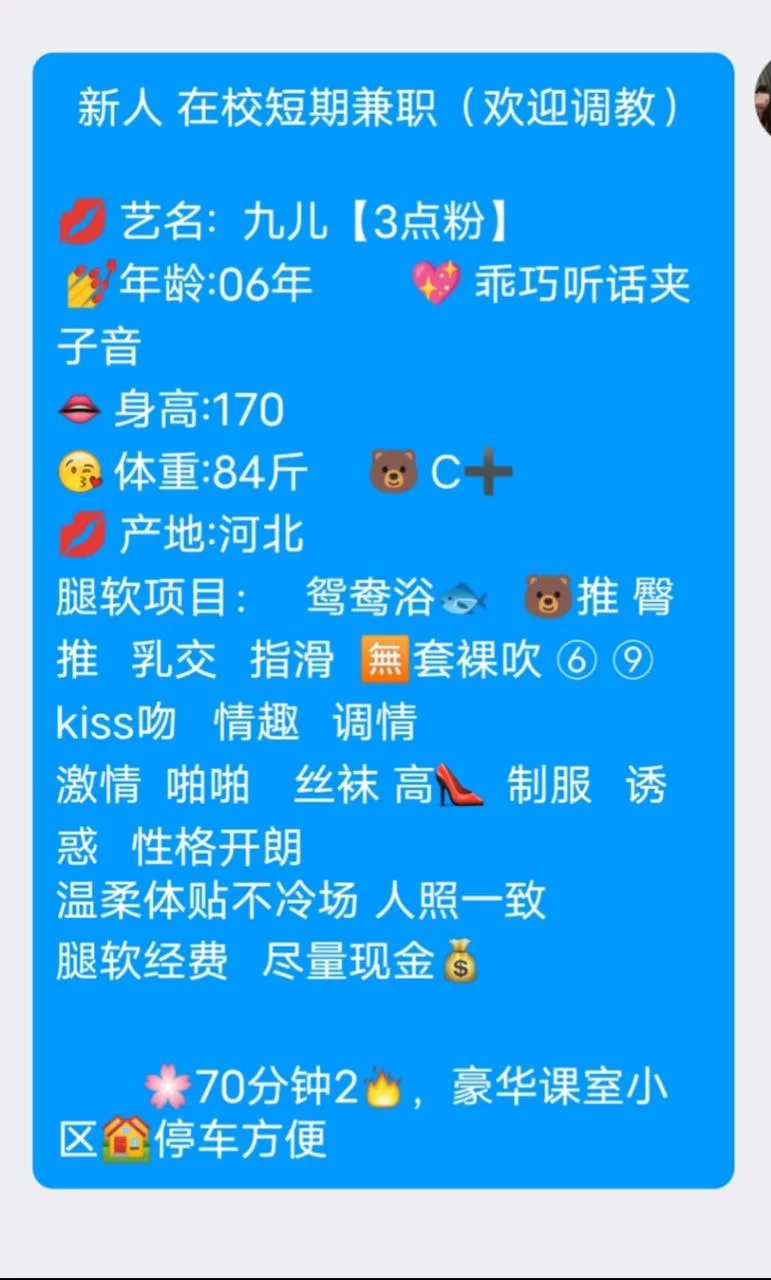 威客管理提示:要求付定金 保证金的,总之提前要钱的都是骗子 妹妹想的相当不错,家里环境也很干净,舌头相当软,各种活有,一点不鸡车,值得推荐,大家可以自己去体会体会,服务相当周到
